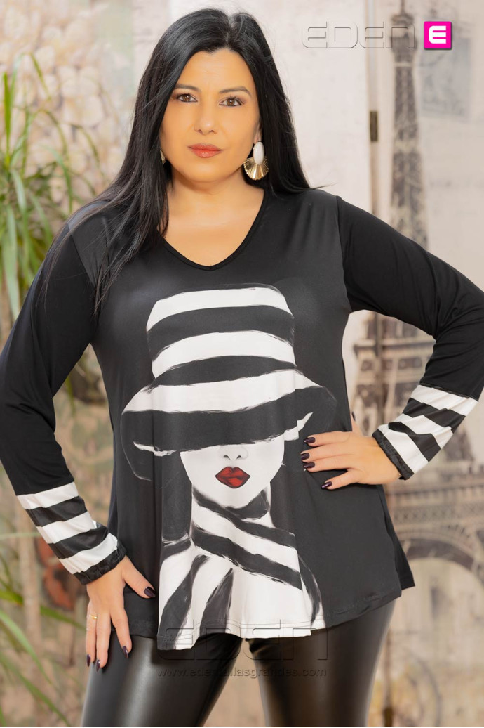 Pensada especialmente en tallas grandes, su corte favorecedor y su tejido cómodo la convierten en una pieza ideal para lucir con confianza y estilo. Es perfecta para combinar con pantalones, faldas o jeans, aportando siempre un toque sofisticado y moderno.