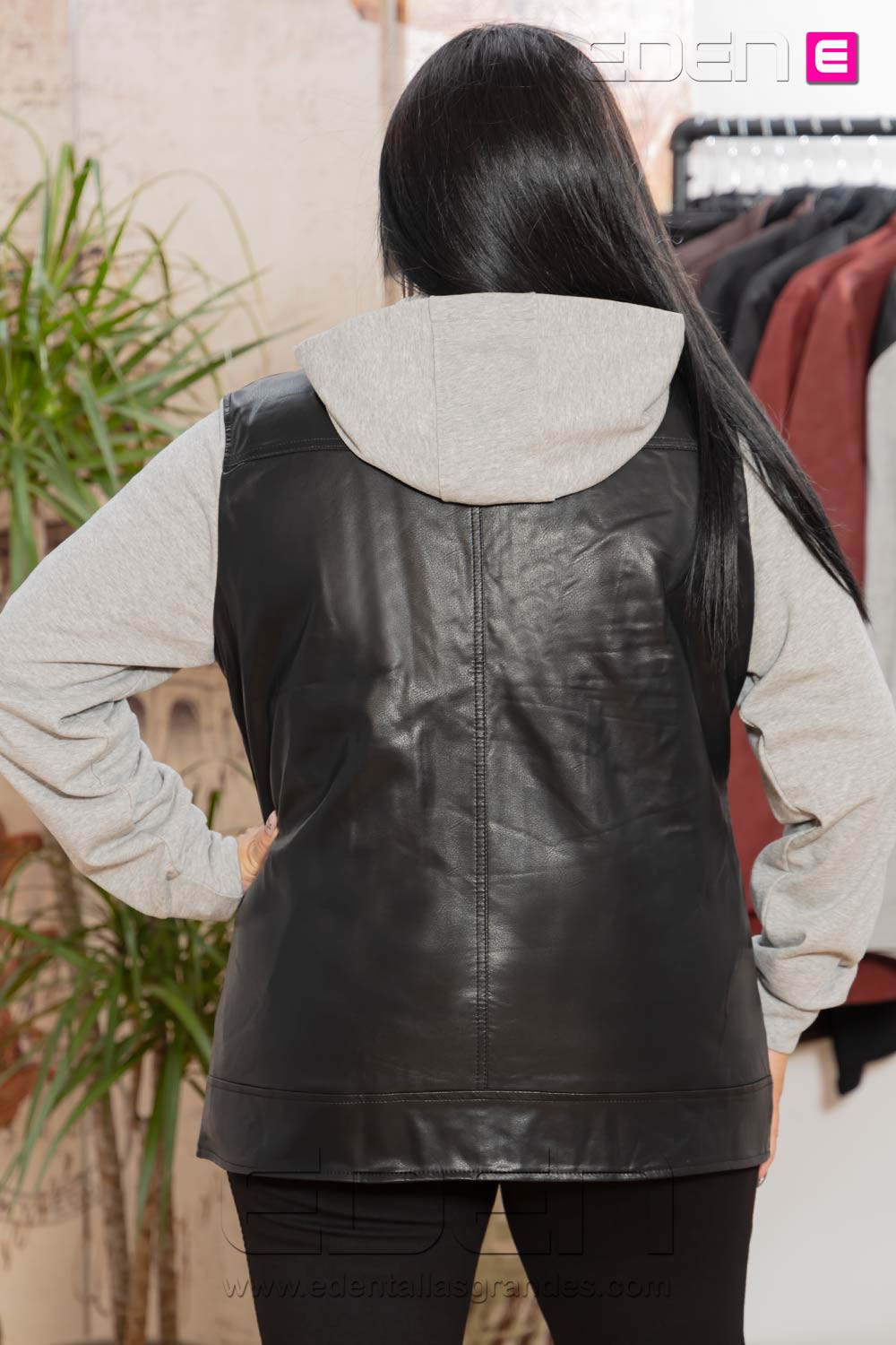La Chaqueta con capucha en polipiel negra de Velika en tallas grandes es mucho más que una prenda de abrigo: es una pieza de moda urbana que transmite seguridad, actitud y feminidad.