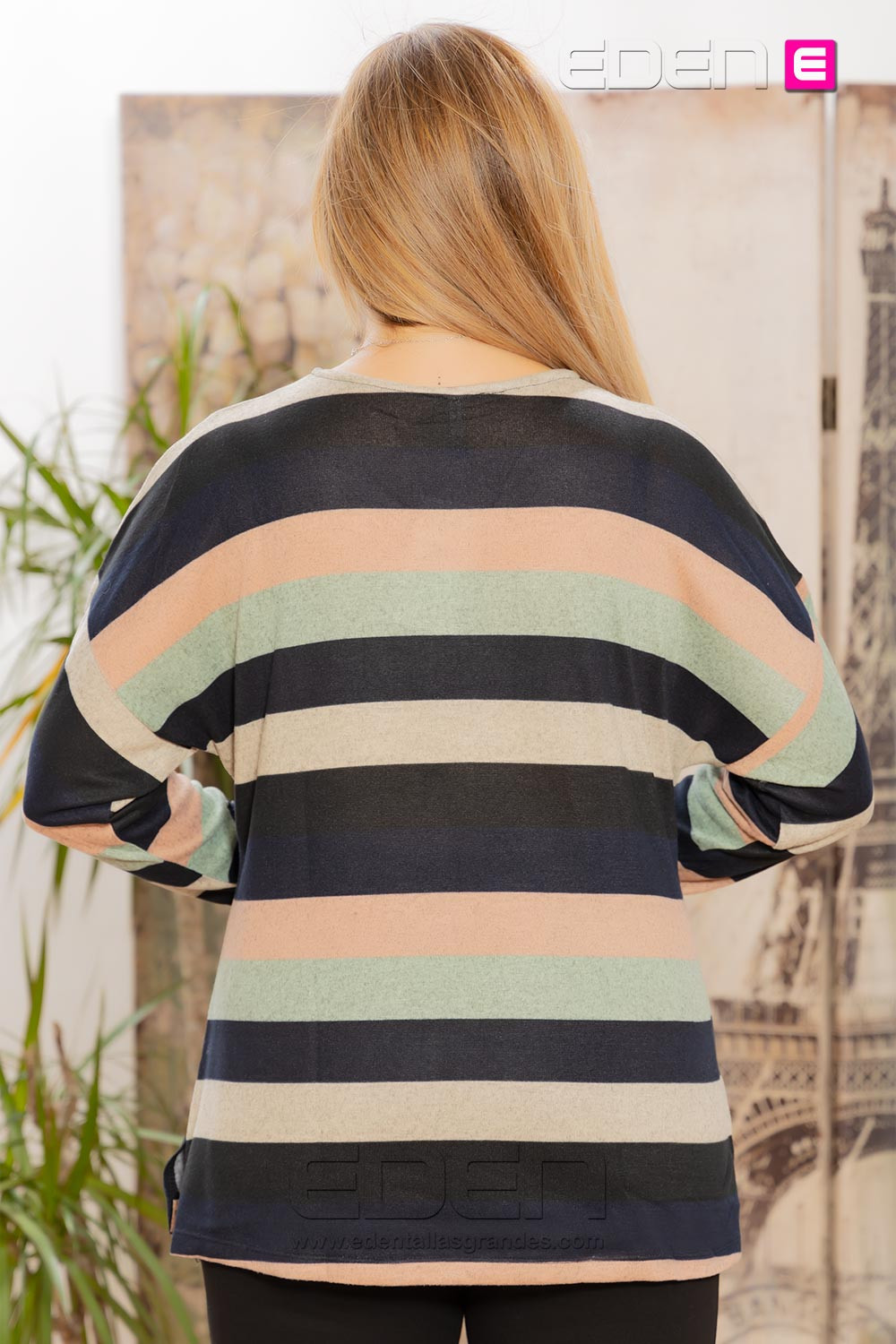 El estampado de rayas, siempre actual, aporta un toque alegre y moderno, perfecto para crear looks casuales y favorecedores. Su corte cómodo y versátil permite combinarlo fácilmente con jeans, pantalones o faldas, adaptándose a diferentes estilos y ocasiones.