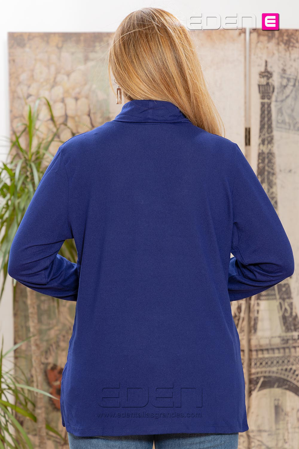 El detalle de la cremallera frontal añade un toque contemporáneo y funcional, permitiendo llevarlo abierto o cerrado según el estilo o la ocasión. Su color azul aporta frescura y elegancia, combinando fácilmente con jeans, pantalones o faldas.