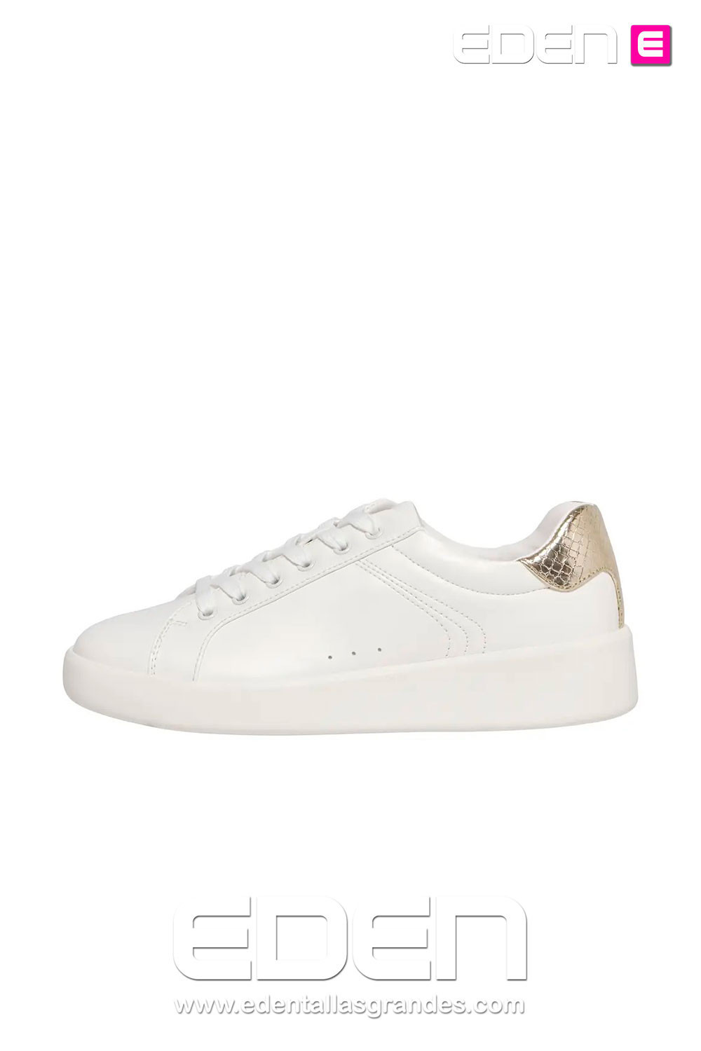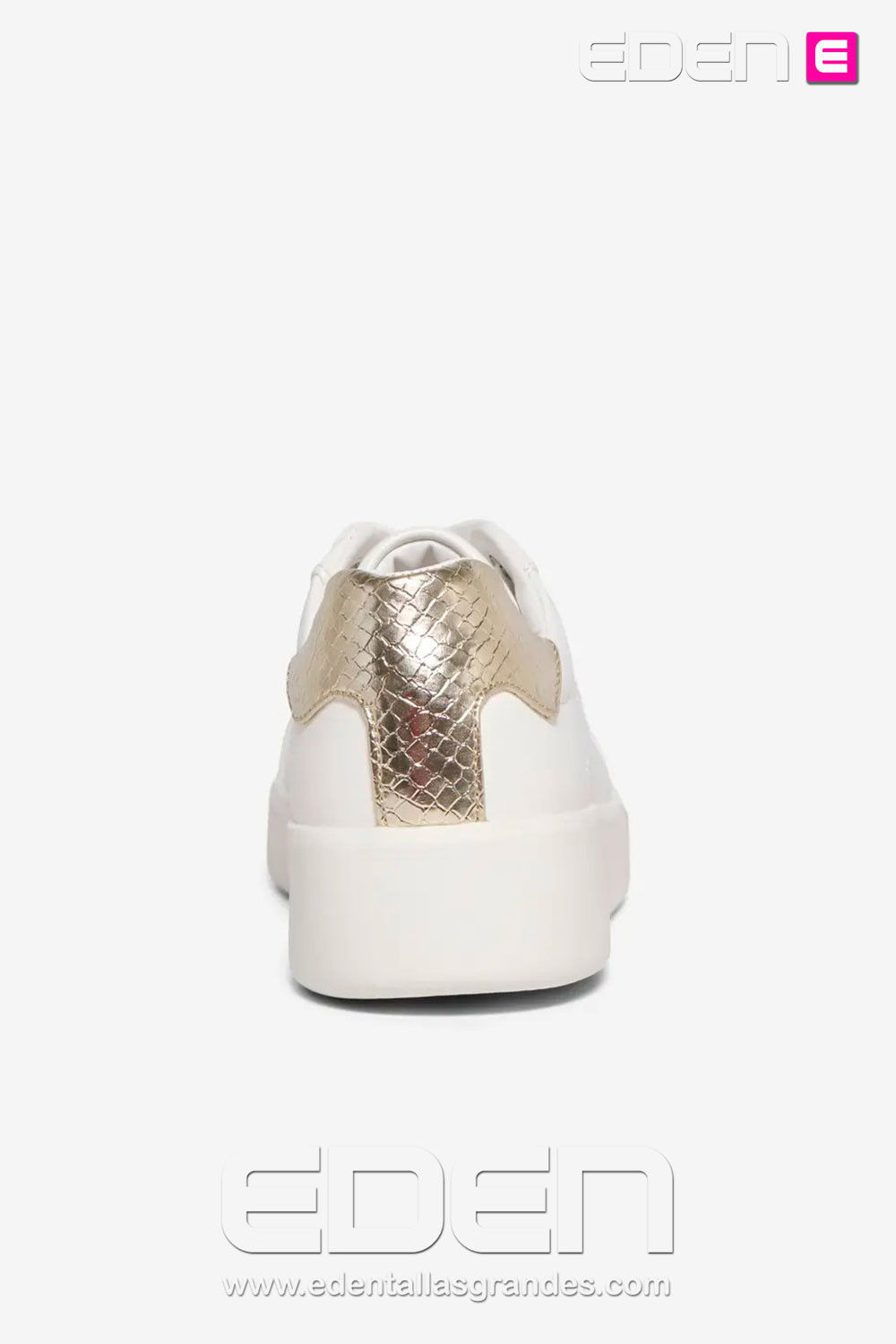 La Sneaker Modelo Onlsoul-4 Blanco con Detalles Dorados de Only es la combinación perfecta entre comodidad y estilo. El blanco aporta frescura y versatilidad, mientras que los detalles dorados añaden un toque elegante que eleva cualquier look.